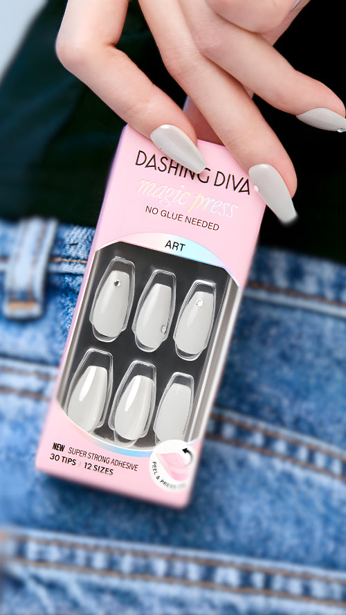 Dashing Diva Magic Press 穿戴甲 - Moon Beige (Almond)|氣質碎閃裸色・不傷甲日常款