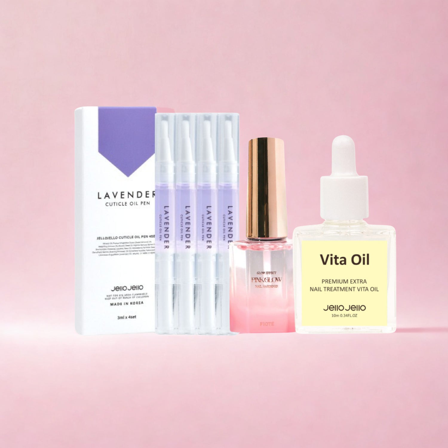 做美甲前、做美甲後、卸甲後,每個環節都有產品守護。護甲油、指甲強化液、滋養護手霜——從指甲到指緣,全程呵護。
