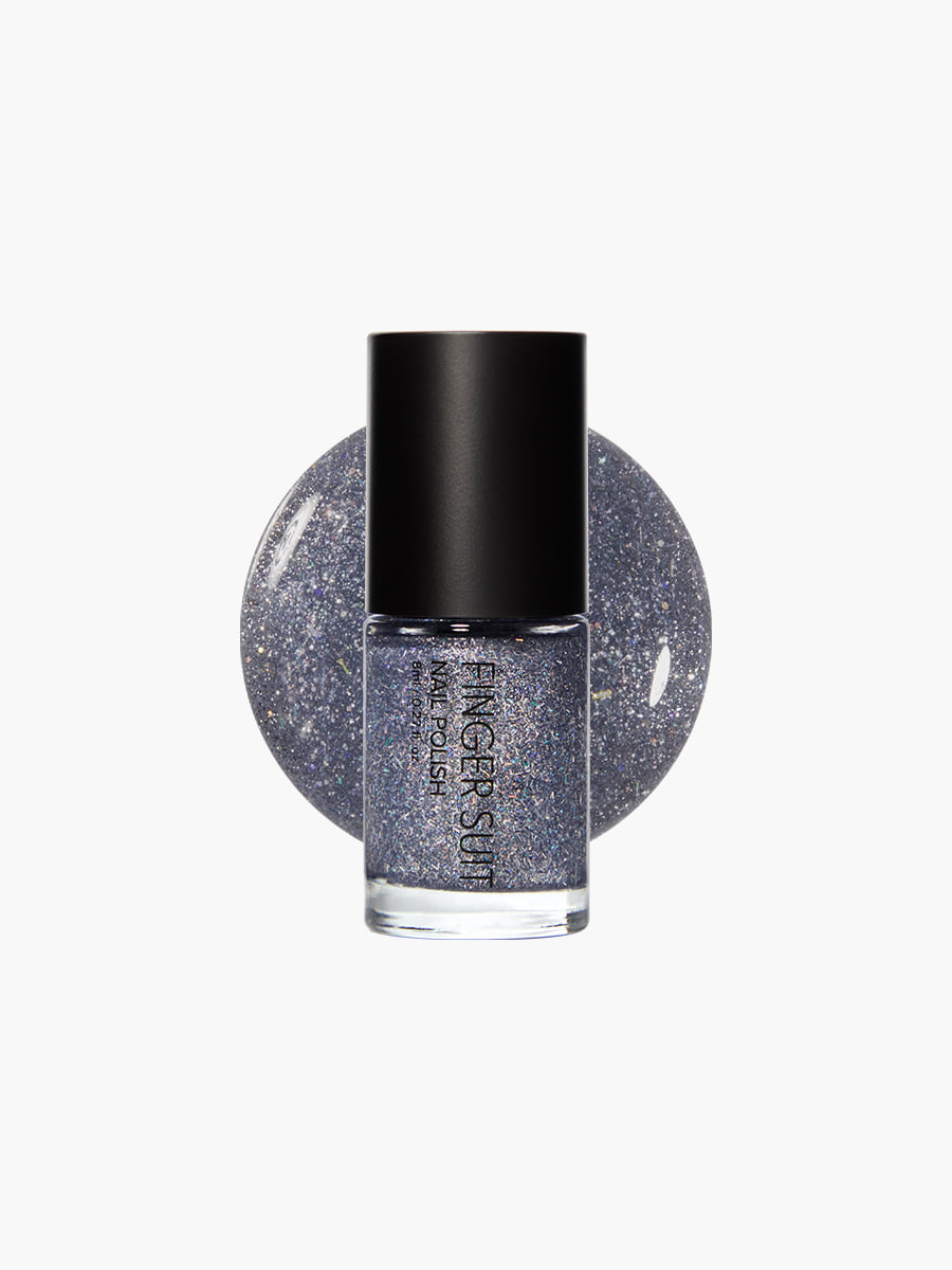 藍糖漿中滿載銀亮片,如派對鏡球閃耀;輕鬆打造節慶 Disco 指彩,閃亮不厚重。