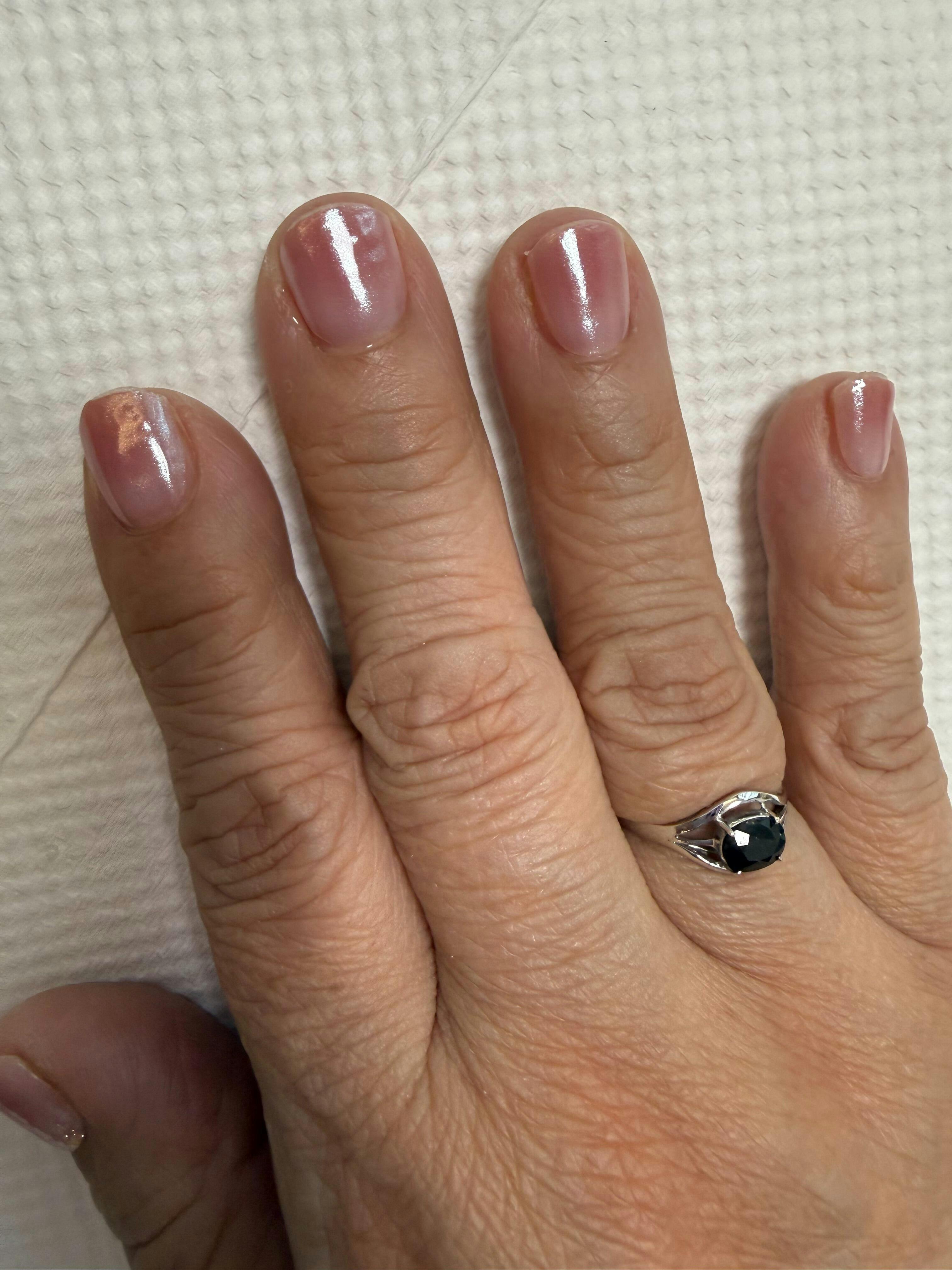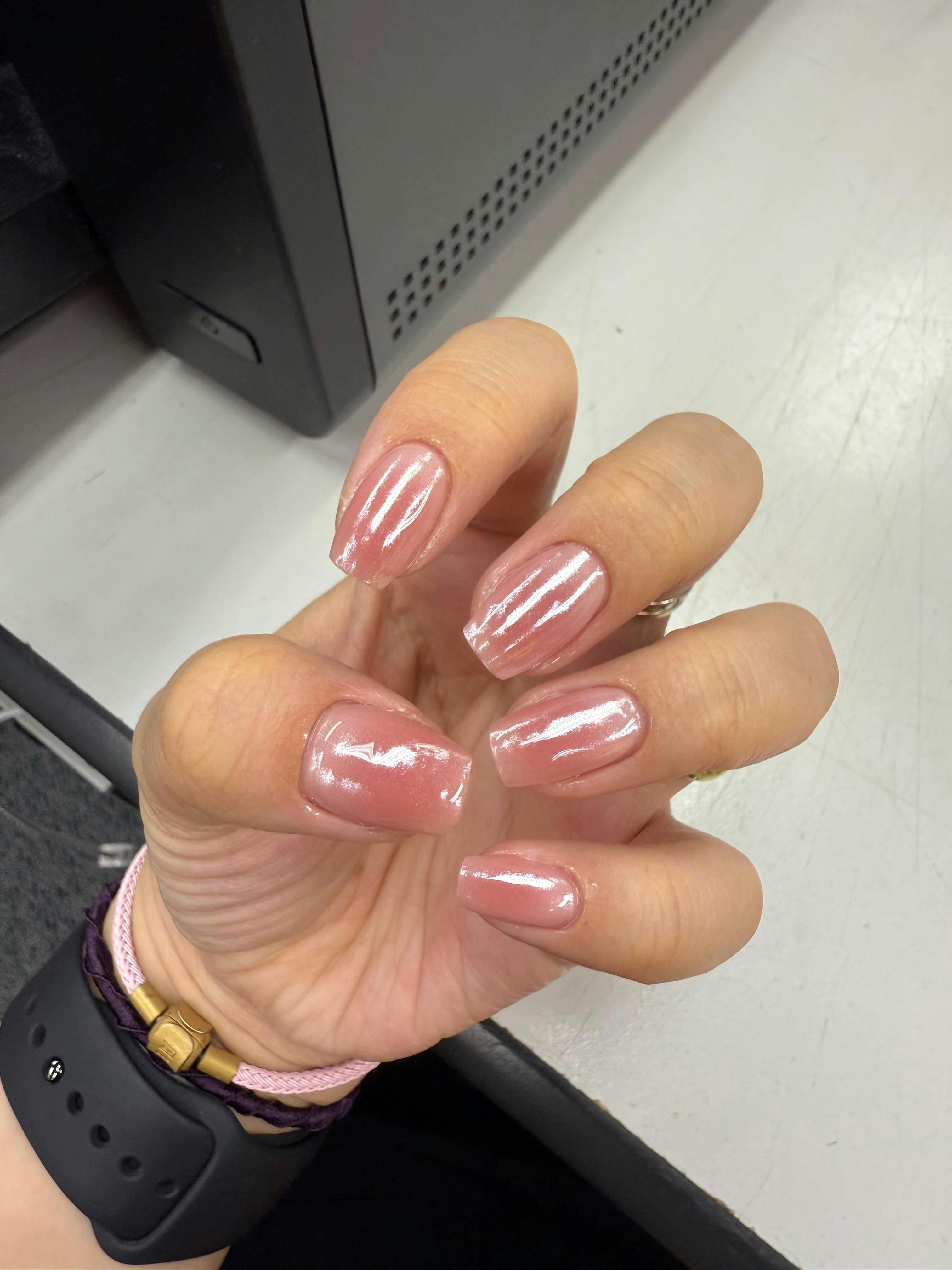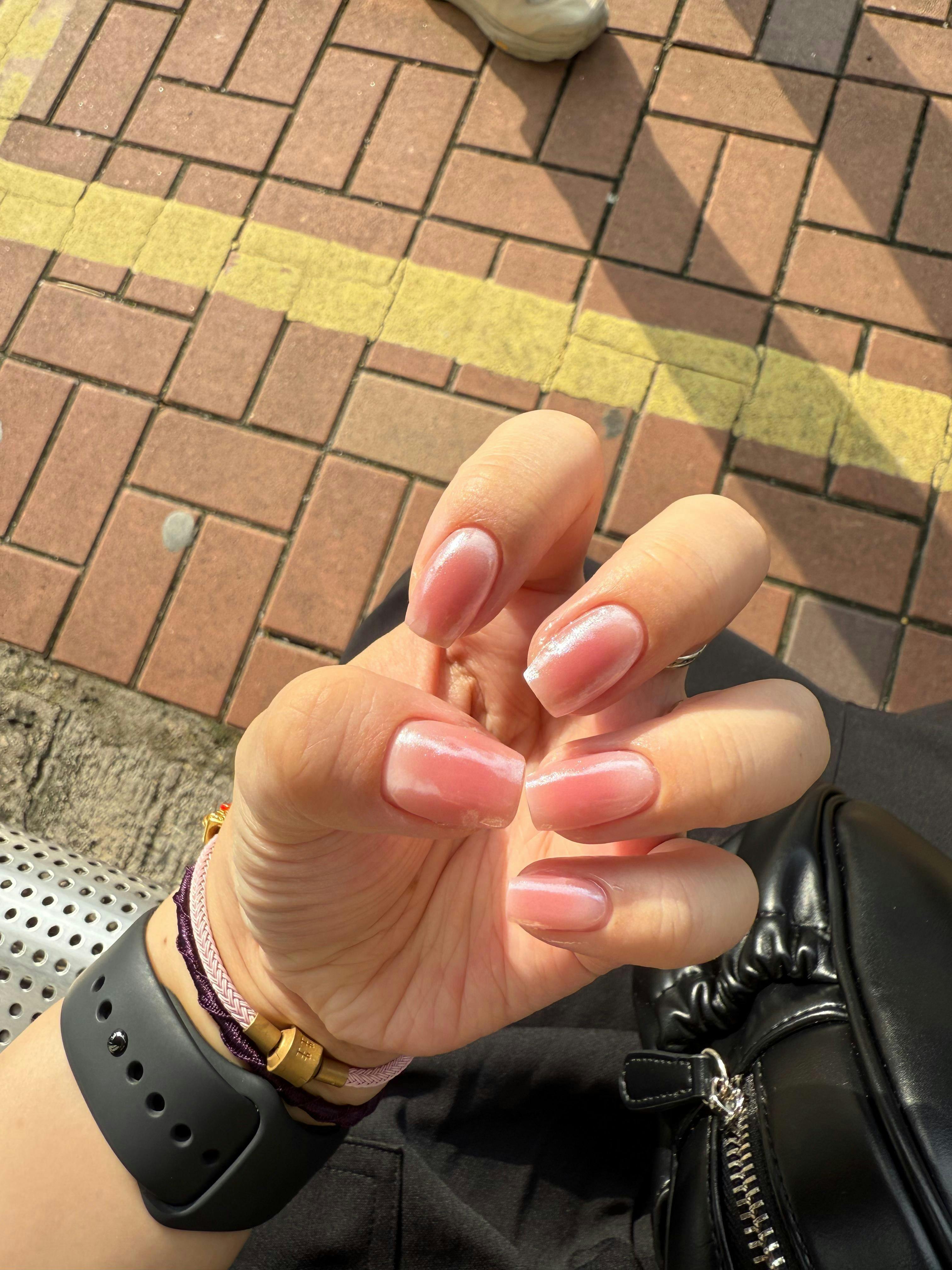 透出玻璃光澤的玫瑰粉調鏡面美甲貼,讓雙手猶如鑲嵌「珍珠瑪瑙」般晶透閃耀;採用韓國凝膠技術,5分鐘快速貼合,免照燈也能擁有沙龍級鏡面效果。