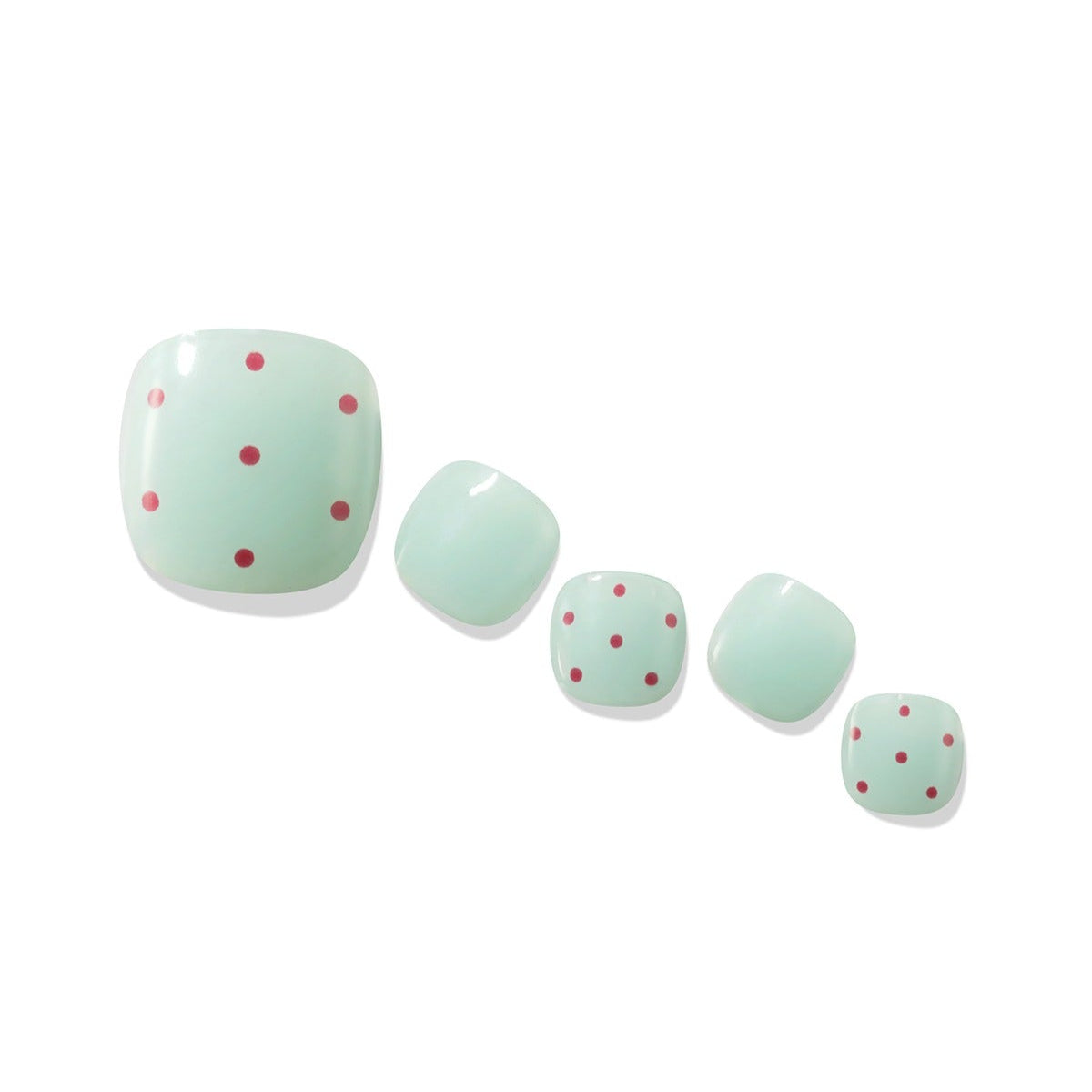 柔和薄荷色搭配可愛红圓點的KAWAII腳甲貼!用清凉夏日感點亮腳尖。搭配凉鞋/拖鞋展現完美细節!